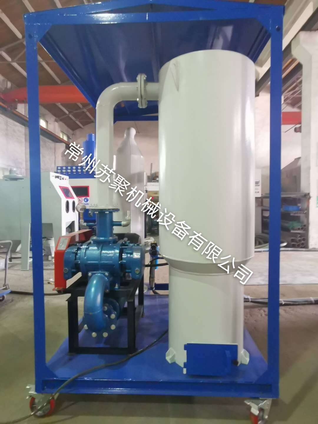 边喷边回收式喷砂机主要由喷砂机主机、移动平台车、脉冲除尘器等组成。