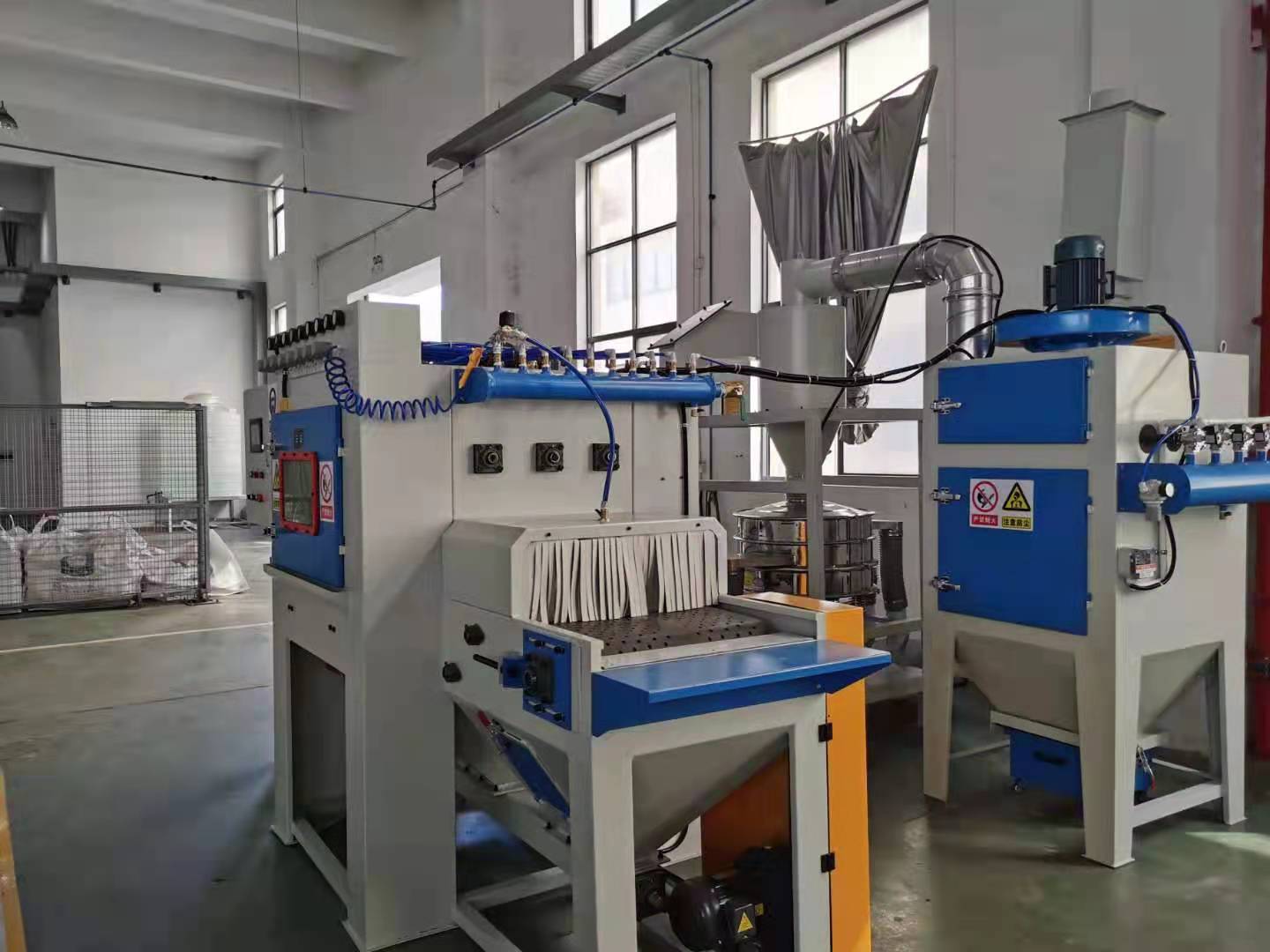 5、 配有大型除尘机和磨料与粉尘旋风分离器,可分离磨料与粉尘,可减少磨料消耗,环境污染。磨 料可自动循环使用。