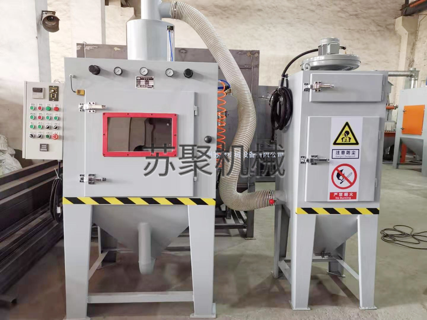 5、旋风分离式,砂材自动回收循环使用,砂材和粉尘自动分离降低砂材消耗,使用砂材粒度容易控制。